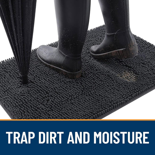 OLANLY Dog Door Mat for Muddy Paws 24x16, Absorbs Moisture and Dirt, Absorbent Non-Slip Washable Doormat, Quick Dry Chenille Mud Mat for Dogs, Entry Indoor Entryway Carpet for Inside Floor, Dark Grey
