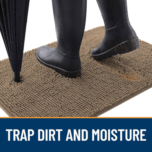 OLANLY Dog Door Mat for Muddy Paws 59x35, Absorbs Moisture and Dirt, Absorbent Non-Slip Washable Doormat, Quick Dry Chenille Mud Mat for Dogs, Entry Indoor Entryway Carpet for Inside Floor, Tan