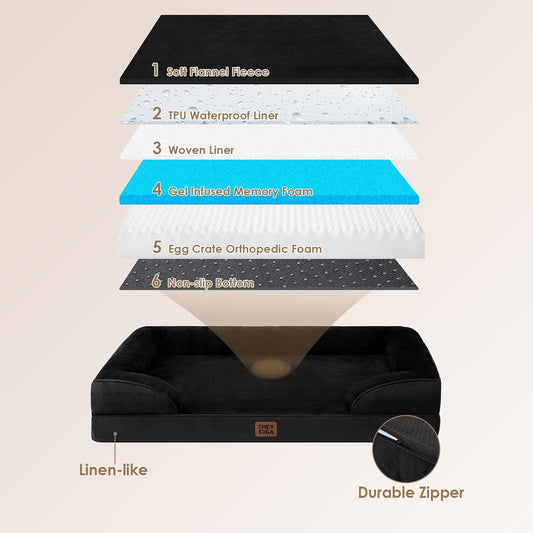EHEYCIGA Orthopedic Dog Beds for Extra Large Dogs, Waterproof Memory Foam XL Dog Bed with Sides, Non-Slip Bottom and Egg-Crate Foam Big Pet Couch Bed with Washable Removable Cover, Black
