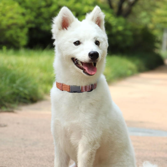PET ARTIST Soft Cotton Dog Collars for Small Dogs in Rustic Brown, Simple Dog Collar with Quick Release Metal Buckle & D Ring, S Size (10-16")