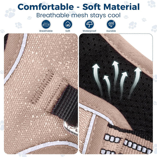 Funfox Dog Harness No Pull, Adjustable Pet Vest Harness, Super Soft Material with Vertical Handle Easy Control, Reflective Night Walking, 2 Leash Clips for Medium Sized Dogs, Pink, M