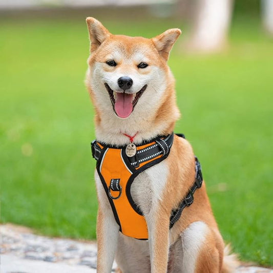 PoyPet No Pull Dog Harness, Reflective Comfortable Vest Harness with Front & Back 2 Leash Attachments and Easy Control Handle Adjustable Soft Padded Pet Vest for Small to Large Dogs (Orange,XS)