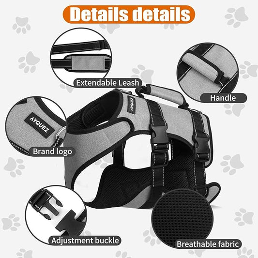 Ayquez Dog Lift Harness with Storage and Transport Bag, Dog Harness with Handle for Lifting & Hip dysplasia, arnés para Perros pequeños, pechera para Perros Gray, S