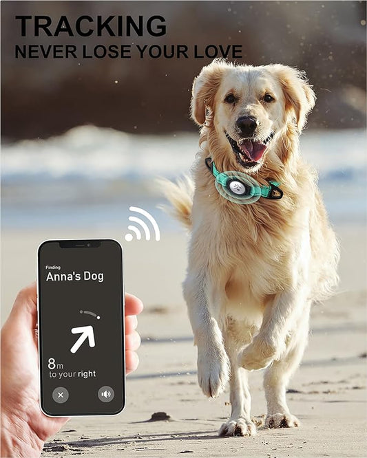 TagME Airtag Dog Collar,Waterproof Reflective Pet Collar with Airtag Holder,Soft Padded and Double D-Rings for Large Dogs,Turquoise