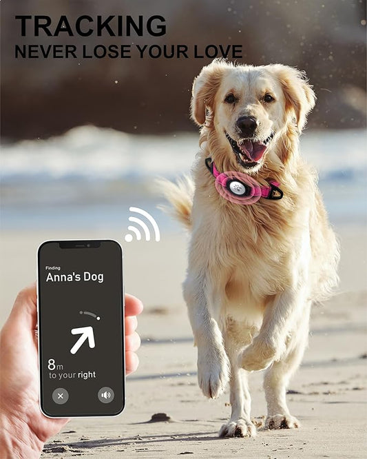 IP68 Waterpoof Dog Airtag Holder, Stretchy Silicone Full Body Covered Apple Air Tag Holder for Dog Cat Collar Fit All Width Collar (Pink, 1 Pack)
