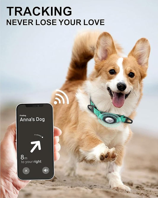 TagME Airtag Dog Collar,Waterproof Reflective Pet Collar with Airtag Holder,Soft Padded and Double D-Rings for Puppy,Turquoise