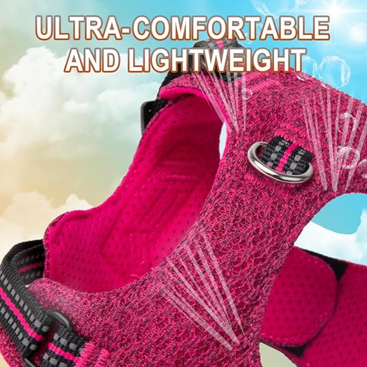 Dog Harness Step in Dog Vest Harness, Reflective Adjustable Puppy No Pull Harness Breathable Soft for Small and Medium Dogs Cats, Pink, S