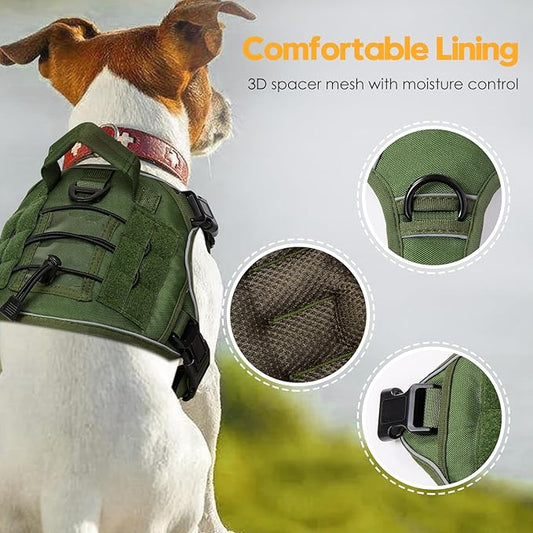 Heavy-Duty Tactical Dog Harness for Large Dogs, No Pull Adjustable Reflective Pet Vest with Molle System, K9 Military-Grade Control for Service Training, Outdoor & 10+ Breeds, Green, Small