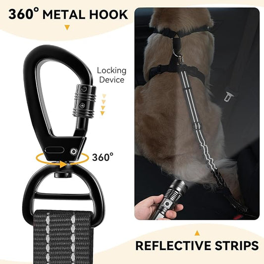 Pawaboo 2Pack Dog Seatbelt for Car, 3-in-1 Dog Car Seat Belt Bungee,Shockproof Dogs Tether for Car with Buckle & Hook Latch, Adjustable Reflective Dog Car Harness Leash with 360° Lockable Buckle,Black