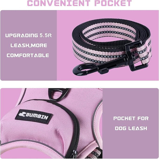 BUMBIN Dog Harness for Large Dogs, No Pull Adjustable No Choke Pet Vest with Dog Leash Fit Smart Reflective Pet Walking Harness for Training Easy Control Soft Handle Pink L