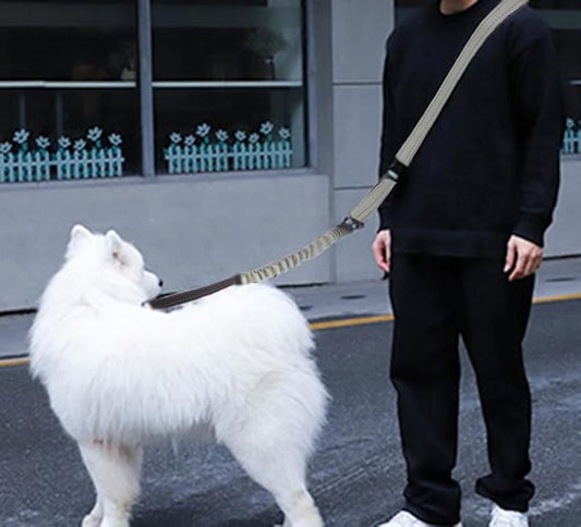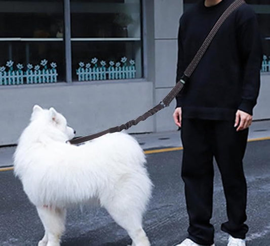 Hands Free Dog Leash for Large Medium Dogs Heavy Duty Bungee Reflective Adjustable Waist Leashes for Walking Running with Car Buckle 4-6FT (Grey)