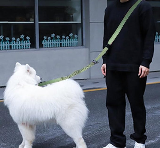 Hands Free Dog Leash for Large Medium Dogs Heavy Duty Bungee Reflective Adjustable Waist Leashes for Walking Running with Car Buckle 4-6FT (Green-1)