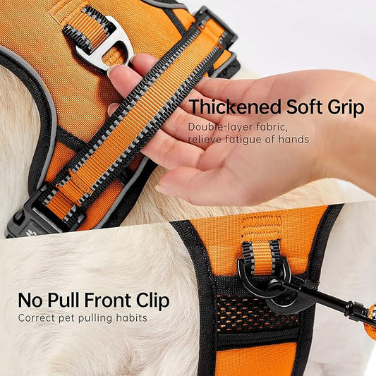 NESTROAD No Pull Dog Harness,Adjustable Oxford Dog Vest Harness with Leash,Reflective No-Choke Pet Harness with Easy Control Soft Handle for Large Dogs(X-Large,Orange)