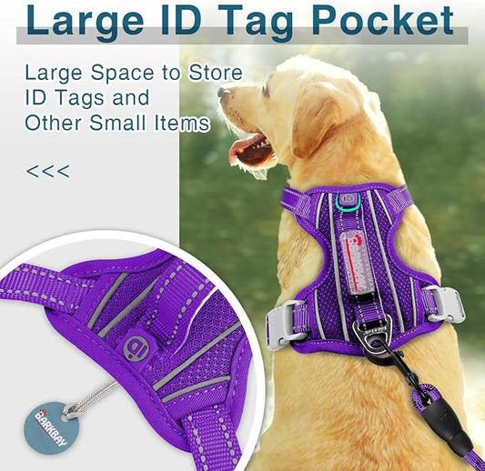 BARKBAY Dog Harness No Pull with ID Tag Pocket - Heavy Duty, Reflective, Easy Control for Large Dogs(Purple,XL)