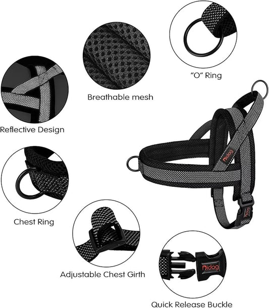 Didog No Pull Dog Harness with Breathable Mesh Padded, Full Reflective & Quick Fit Adjustable Vest Harness, Easy for Training Walking for Small & Medium and Large Dogs (Black, S:Chest 18-22")