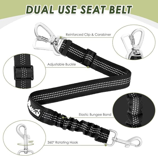 SlowTon Dog Seat Belt Harness for Car, Dog Car Harness Adjustable Mesh Breathable & Dog Seatbelt Safety Tether with Elastic Bungee for Small Medium Large Pets(Black, Double Clip, S)