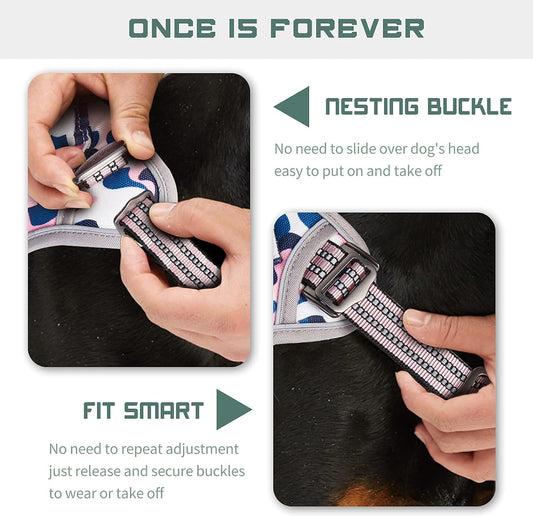 BUMBIN Tactical Dog Harness for Medium Dogs No Pull, Famous TIK Tok No Pull Dog Harness, Fit Smart Reflective Pet Walking Harness for Training, Adjustable Dog Vest Harness with Handle Pink Camo M