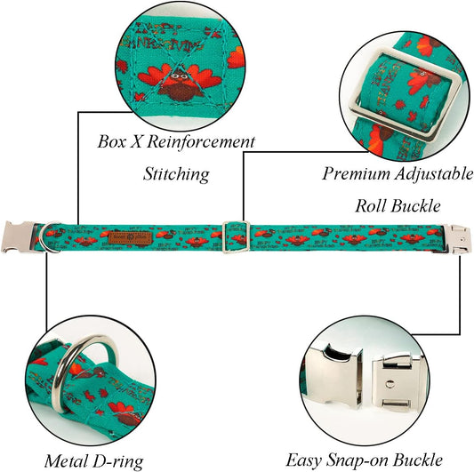 Lionet Paws Christmas Dog Collar with Flower, Dog Flower Collar with Metal Buckle for Dogs, Adjustable Comfortable Dog Collar Girl Gift, M, Neck 13.5-22 in