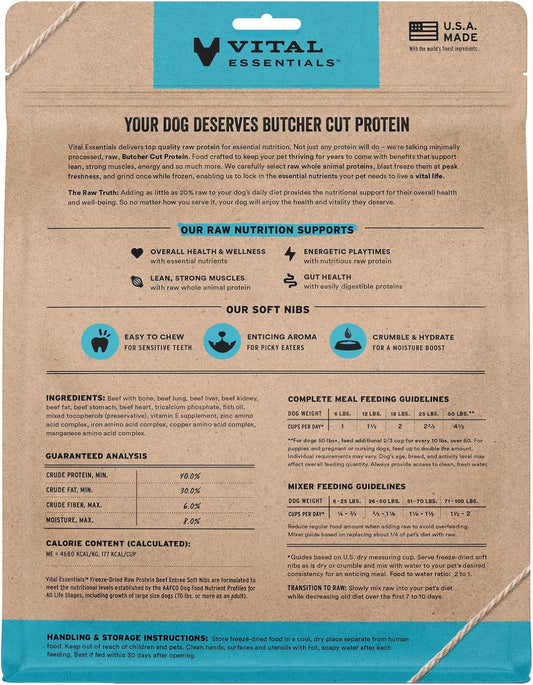 Vital Essentials Freeze-Dried Raw Beef Meal or Mixer Dog Food Soft Nibs | 98% Beef, Organs & Bone | 14 oz