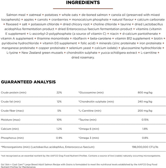 Go! Solutions Skin + Coat Care, Dry Dog Food, Large Breed Adult Salmon Recipe with Grains, 25 lb Bag