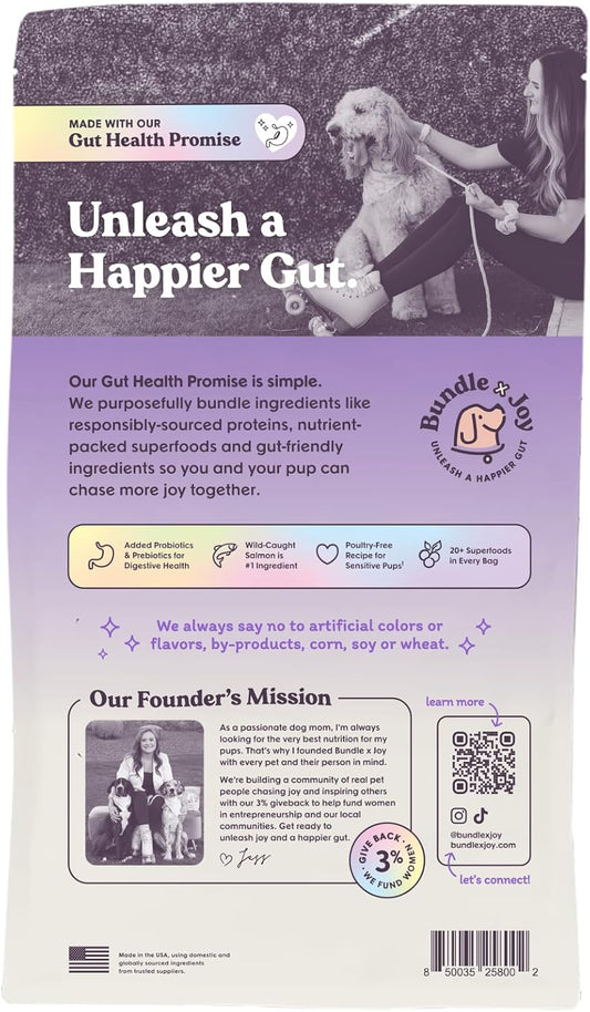 Vibrant Salmon Probiotic Dog Food Dry, 4lb Bag, Allergy and Gut-Friendly Adult Kibble for Digestive Health with Wild-Caught Salmon, 20 Plant Based Superfoods, Beef and Poultry Free