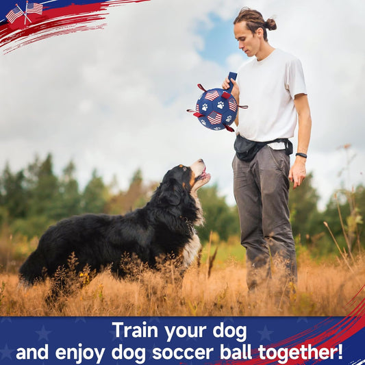 QDAN Dog Toys, Soccer Ball with Straps, Durable Dogs Balls for Extra Large Breeds, Beach Pool Water Toy, Dog Birthday Gifts, Herding Balls (9 Inch)