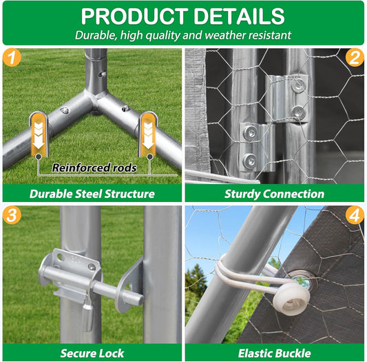 Large Metal Chicken Coop, Walk-in Chicken Run Pen with Waterproof Cover, Dome Roof Poultry Cage for Outdoor, Backyard, Farm (8.96'Wx12.99'Lx6.4'H)