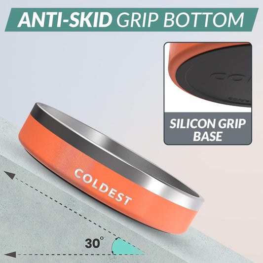 Coldest Dog Bowl - Anti Rust Metal, Non Slip, 3 Layers Insulated Stainless Steel Dog Bowls - Spill Proof & Heavy Duty - Water Bowl for Dogs, Cats & Pets, Dish Washer Safe (100 oz, Sahara Peach)