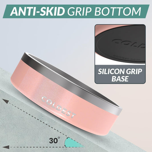 Coldest Dog Bowl - Anti Rust Metal, Non Slip, 3 Layers Insulated Stainless Steel Dog Bowls - Spill Proof & Heavy Duty - Water Bowl for Dogs, Cats & Pets, Dish Washer Safe (42 oz, Forever Pink Glitter)