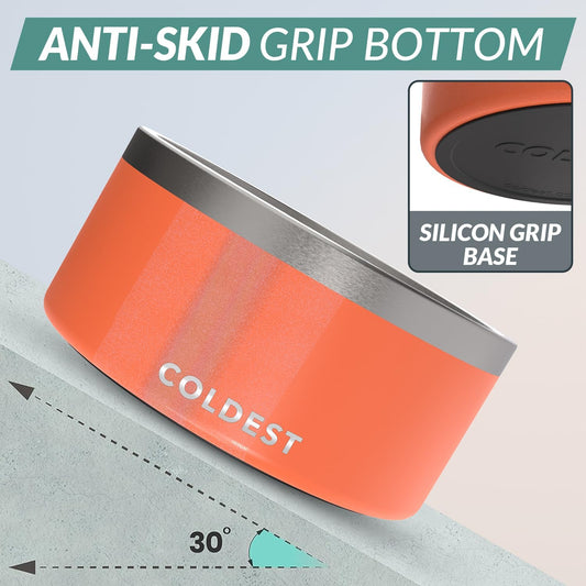 Coldest Dog Bowl - Anti Rust Metal, Non Slip, 3 Layers Insulated Stainless Steel Dog Bowls - Spill Proof & Heavy Duty - Water Bowl for Dogs, Cats & Pets, Dish Washer Safe (42 oz, Sahara Peach)