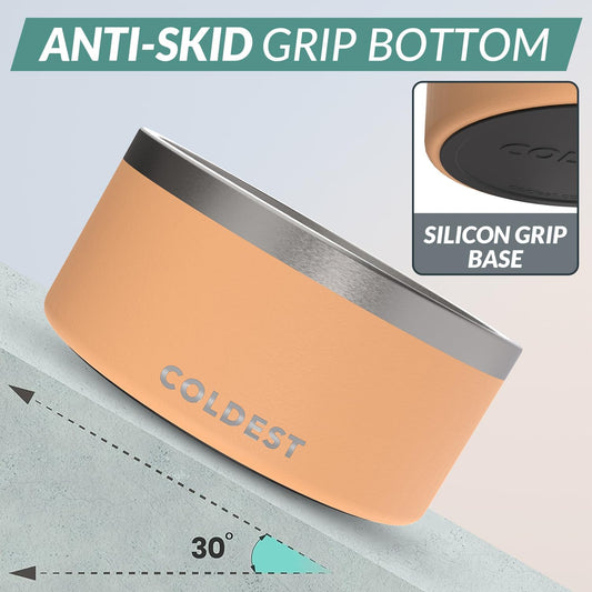 Coldest Dog Bowl - Anti Rust Metal, Non Slip, 3 Layers Insulated Stainless Steel Dog Bowls - Spill Proof & Heavy Duty - Water Bowl for Dogs, Cats & Pets, Dish Washer Safe (200 oz, Sahara Peach)