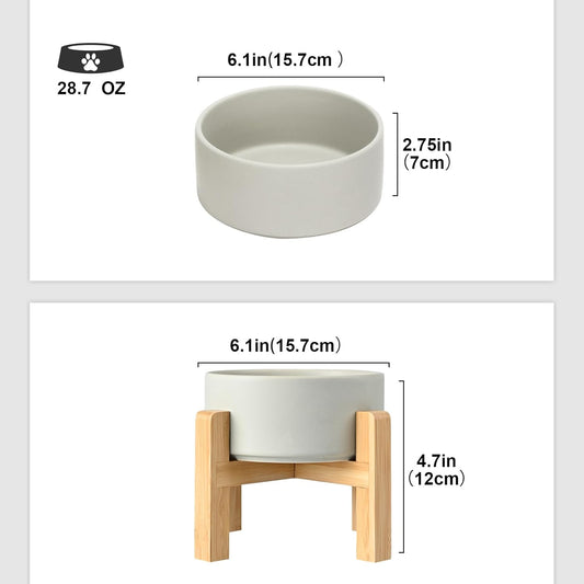 SPUNKYJUNKY Ceramic Elevated Dog Bowls 2 Pack - 6.1inch Raised Dog Bowls with Non-Slip Wooden Stand for Medium Dogs Dishwasher Safe(Grey,28.7OZ*2)
