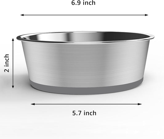 Taglory 11 Cup Stainless Steel Dog Bowls Set of 2 for Food and Water, Silicone Base Anti-Slip, Rust Resistant, Extra Thick Metal Bowls for Large Dogs, 84oz, Gray