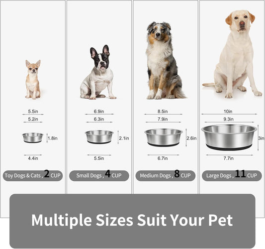 Taglory 11 Cup Stainless Steel Dog Bowls Set of 2 for Food and Water, Silicone Base Anti-Slip, Rust Resistant, Extra Thick Metal Bowls for Large Dogs, 84oz, Black