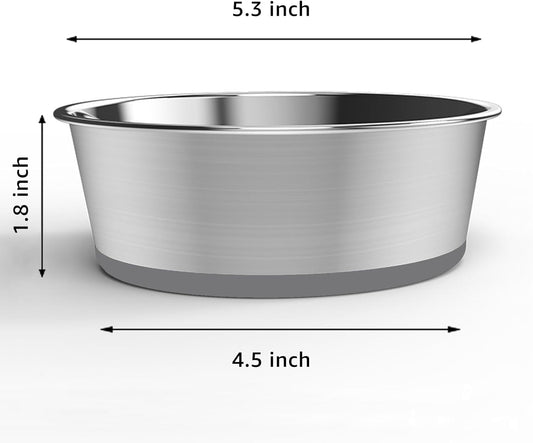 YINGFAN Stainless Steel Dog Bowls, 2 Pack Metal Dog Bowls with Non-Slip Rubber Base, Durable Food and Water Bowl for Small, Puppy Dogs, Holds 2 Cups, BPA-Free, Dishwasher Safe (Gray)