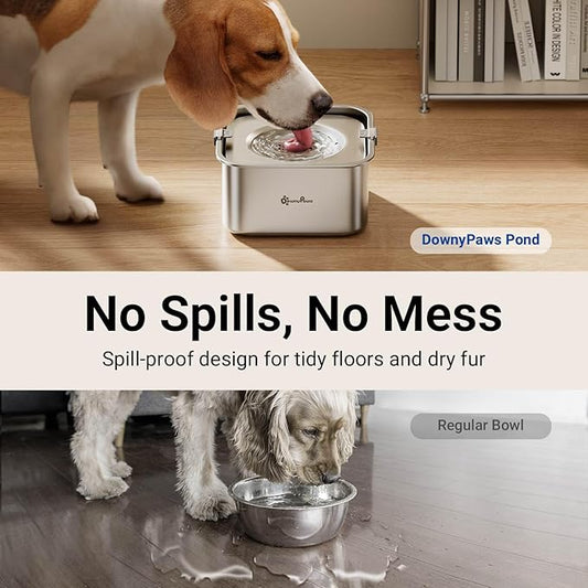DownyPaws No Spill Water Bowl for Dogs,101oz/3L Stainless Steel Slobber Stopper, No Drip Slow Drinking Dog Water Bowl, No Mess Dog Water Dispenser Spill Proof, Dishwasher Safe, Silver