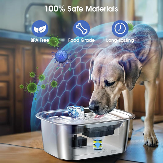 Large Dog Water Fountain 14L/3.7Gal, Stainless Steel Pet Fountain for Large Dogs and Multi-Pets Families, with Visible Window & Extra Wide Drinking Area, Square Design Enlarges Capacity & Saves Space