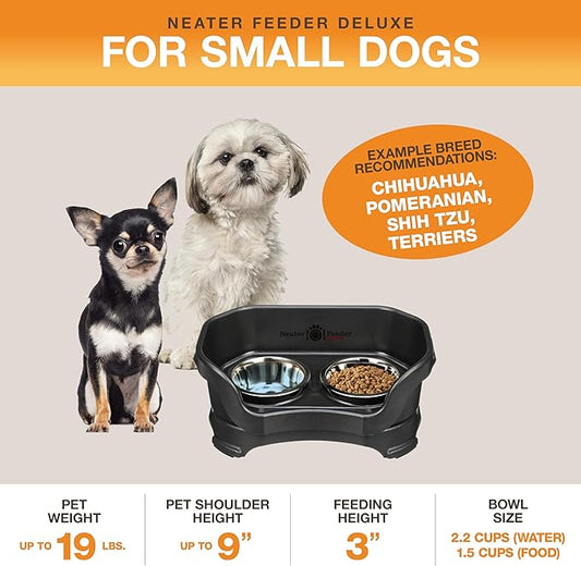 Neater Pet Brands Neater Feeder Deluxe Mess Proof Dog Bowls Elevated for Small Dogs Under 19 lbs, Made in USA, No Spill Raised Dog Food Bowl Stand Feeding Station, Food and Water Bowl Set, Black
