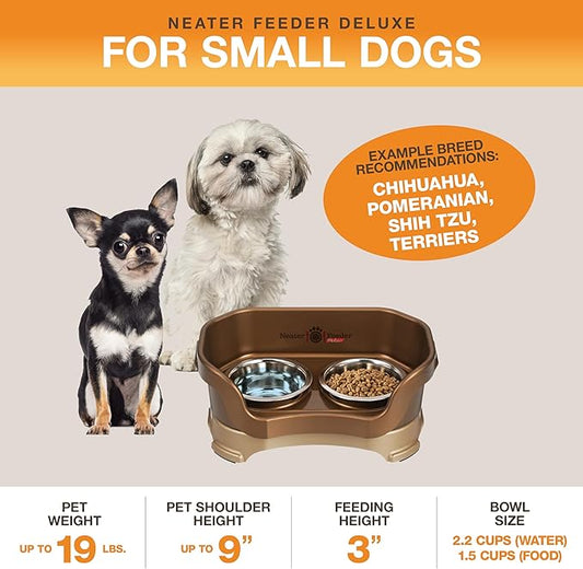 Neater Pet Brands Neater Feeder Deluxe Mess Proof Dog Bowls Elevated for Small Dogs Under 19 lbs, Made in USA, No Spill Raised Dog Food Bowl Stand Feeding Station, Food and Water Bowl Set, Bronze