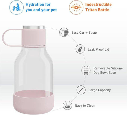 Asobu Buddy Bottle a Stainless Steel Insulated Water Bottle for with Removable Dog Water Bowl and Dog Food and Treat Storage Bowl (Pink, Tritan 50 oz Water Bottle with Bowl)