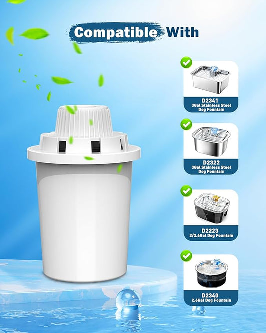 Dog Water Fountain Filters Replacement 4 Packs, 2 Months Set of Replacement Filters for Large Pet Cat Water Fountain Dog Water Bowl Dispenser, Compatible with D2341/D2223/D2322/D2340 Models