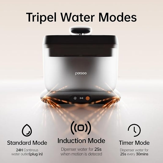 Thermostatic Automatic Pet Water Fountain, Cordless Pet Water Dispenser, Automatic Heating, 4.5L with Stainless Steel Tray for Cats Dogs Multiple Pets Indoor, S7 Plus Grey