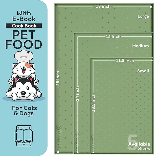 Dog Food Mat - 28x18” Large Silicone Stove Top Protector, Silicone Pet Feeding Mat, Raised Edges Dog Mat for Food and Water Prevent Spill, Waterproof Cat Placemats Protect Floors, Easy Clean Bowl