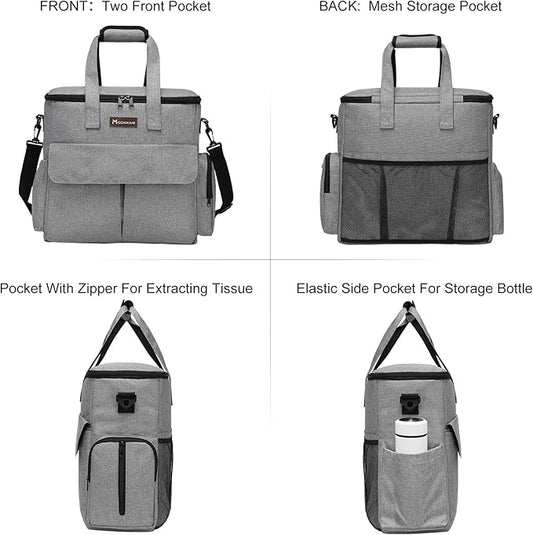 Modoker Dog Travel Bag, Weekend Pet Travel Set for Dog and Cat, Airline Approved Tote Organizer with Multi-Function Pockets, 2 Food Storage Containers, 2 Collapsible Bowls, 1 Feeding Mat (Grey)
