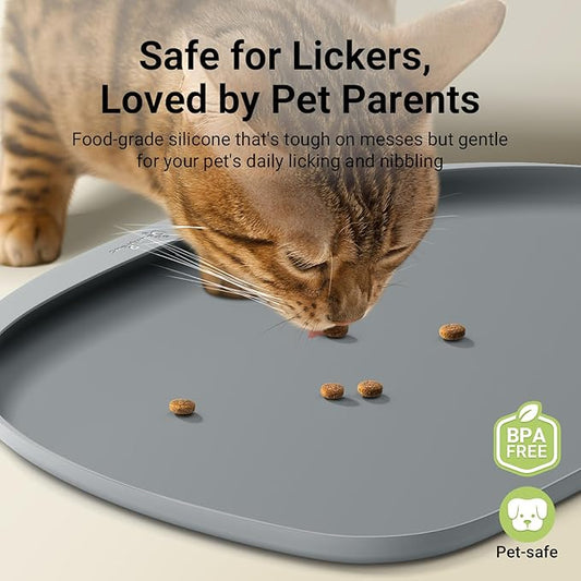 Dog Food Mat, Extra Large 50" x 35" Silicone Pet Feeding Mat with Raised Edge Pet Placemat for Small, Medium, and Large Pets Non-Slip, Easy to Clean (Grey)