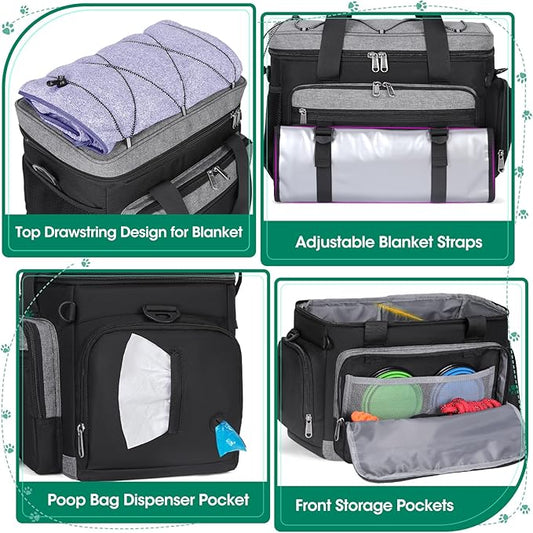 Dog Travel Bag Airline Approved–Pet Travel Tote with Collapsible Bowls,Food Containers & Feeding Mat–Multi-Pocket Organizer for Dogs & Cats, Durable & Water-Resistant for Hiking,Trips,Outdoors