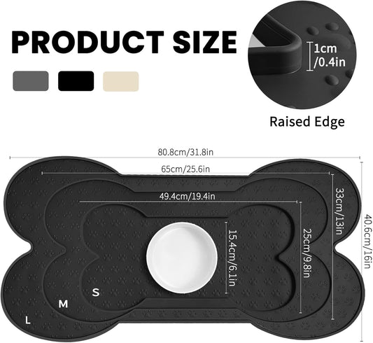 Dog Food Mats for Floors Waterproof, Pet Feeding Absorbent Water Bowl Mat Cat Placemats Gray Bone Shape 25.5 * 17 inch