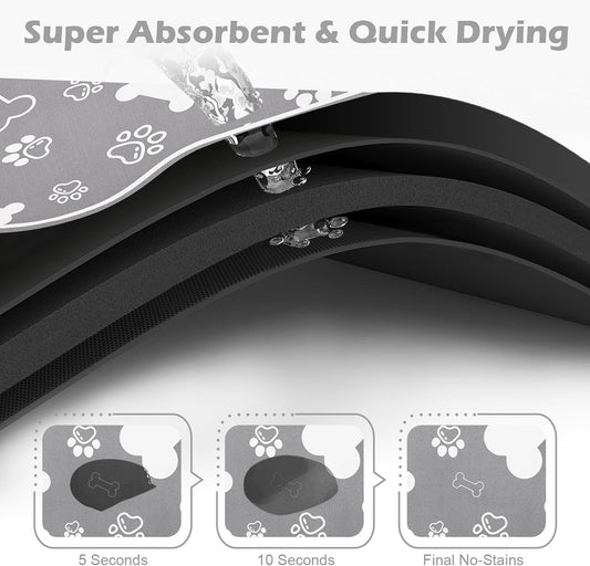 Not Single Dog Pet Cat Dog Food Mat-Absorbent Quick Dry Feeding Placemat for Water and Food, No Stains Rubber Base Mat for Indoor Use, Pet Accessories 16"x24"