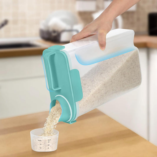 Rice Storage Container 10 Lbs, Pet Cat Dog Food Storage Container with Larger Spout and Cup, Airtight Cereal Containers Storage Food Cereal Dispenser, Kitchen and Pantry Organization Bin-Green