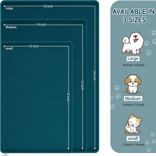 MateeyLife Silicone Cat & Dog Food Mat for Floors Waterproof, Anti-Slip Dog Bowl Mats for Food and Water, Pet Feeding Mats with Lip to Prevent Spills, Pet Placemat for Messy Drinkers to Protect Floors